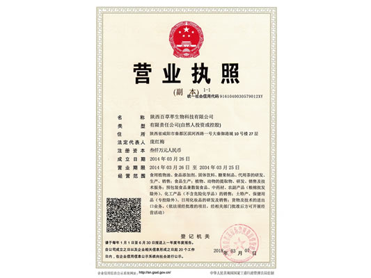 陜西百草萃生物科技有限公司,位于陜西省咸陽市秦都區(qū)濱河西路1號(hào)大秦御港城,公司成立于1996年,主要從事天然植物種植、研發(fā)、生產(chǎn)、加工、銷售為一體的高科技企業(yè)。主營醫(yī)藥原料、保健品原料、化妝品原料,精細(xì)化工原料。公司致力于人類健康保護(hù)事業(yè)“ 以科技為動(dòng)力,以質(zhì)量求生存” 的本質(zhì),依托陜西高新科技技術(shù)人才和科研優(yōu)勢,已形成多學(xué)科、全方位、高層次的技術(shù)管理精英團(tuán)隊(duì)。充分利用秦巴山區(qū)的天然藥物資源,歷經(jīng)多年發(fā)展為打造百草萃生物品牌奠定了基礎(chǔ)。